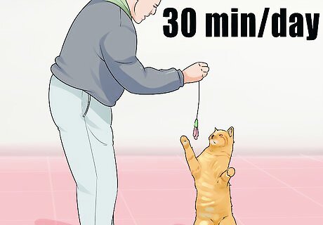 Keep a regular routine. Cats thrive on routine. Making playtime a regular, scheduled part of your day helps to keep your cat happy and healthy, while helping them to feel calm and secure. Aim to spend 30 minutes playing 1-2 times per day. Schedule play time for before you head out for work each day. Schedule a second play time for when you return.