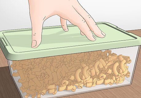 Store any extra food in airtight bins and containers. Place all containers or boxes of food that you’ve stacked in your pantry and garage into large, airtight bins. Keep rats from snacking on your food by keeping all sustenance just out of reach. For extra security, seal the lids of any bins until you’re ready to use the food. Feel free to store these bins wherever you keep your dry food. If you ever see small droppings around your packaged food, that’s a sure sign that rats or other rodents are nearby.