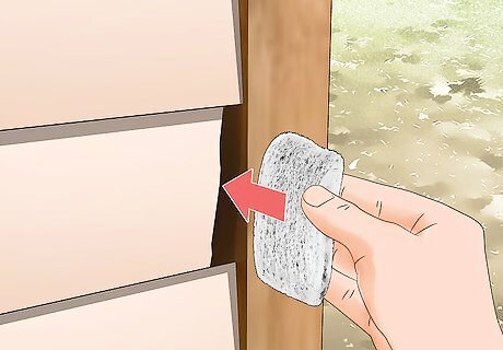 Fill in any cracks in your home’s structure with steel wool and caulk. Search around the walls, floors, siding, and foundation of your home for cracks and gaps that are more than 0.75 inches (1.9 cm) wide, as rats can fit themselves through very small spaces. If you see any gaps around these areas, fill them in with caulk to prevent any rats from entering. You can also use wads of steel wool to plug any gaps or openings. If you’re closing off especially large cracks or gaps, try using pieces of sheet metal to block off entry instead.
