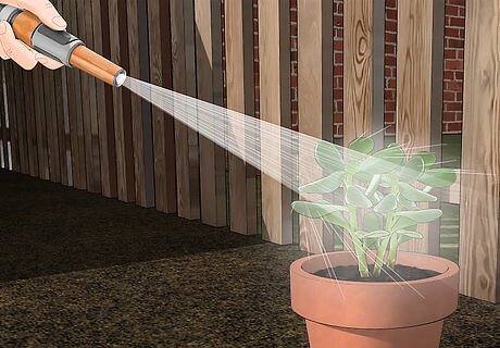 Spray down your plants with a hose. Water from a hose is strong enough to kill spider mites. Point a hose towards your plants and spray the leaves down with cold water. Remember to spray under the leaves as well so that you kill all of the mites.
