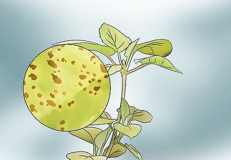 Look for yellow or brown dots on your plant's leaves. Spider mites will weaken your plant, and the leaves will often form small yellow or brown dots. You may also notice leaves drying up and falling off your plant.