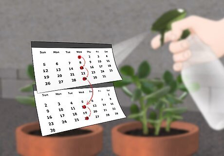 Mist your plants with cold water. Moisture will keep mites away from your plants. Moving the plants indoors and misting them with water 2-3 times a day will reduce the likelihood of mites infesting the plants. You can also keep the plants over a saucer of water to prevent your plants from attracting mites.