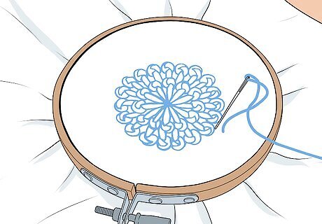 Practice a more difficult design or stitch. If you are looking to improve beyond the basics, you may challenge yourself by practicing a more difficult stitch. Stitches like the french knot and the “lazy daisy” stitch are fun and challenging to practice. You can also try doing a more complicated embroidery design. Perhaps you try an embroidery design with a longer phrase or saying on it. Or you try an image with smaller details that will require you to use different stitches.
