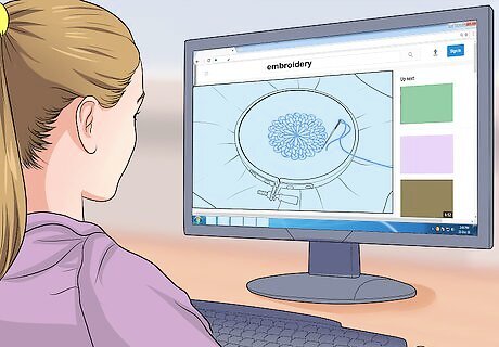 Watch embroidery tutorials online. There are many embroidery tutorials that you can watch and learn from. Search “embroidery” online for videos of different stitches and designs. Watch the videos and practice on your own at home. You could try challenging yourself to learn a new embroidery tutorial every week. Or you may try learning a new embroidery skill a month to expand your skills further.