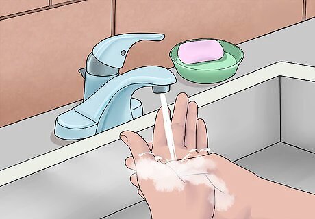 Wash your hands. Start by making sure your hands are clean and dry. Having clean hands will make handling the needle and thread much easier. You can wash your hands with soap and warm water in the sink before you sit down to stitch. Another option is to use baby wipes to clean your hands before you embroider.