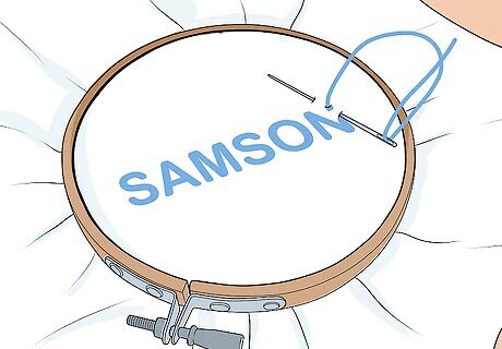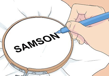Trace the design onto the fabric. Use a fabric marker to draw the design on the fabric. Make sure the lines appear clear and thick as you want them to be easy to follow. Draw the design as large as you can on the fabric so you do not have to make stitches that are too small or difficult. For example, if you were using your name as a design, you may write your name in big block letters: “SAMSON.” Or you may draw a shape in the middle of the fabric. Keep the design simple and basic.
