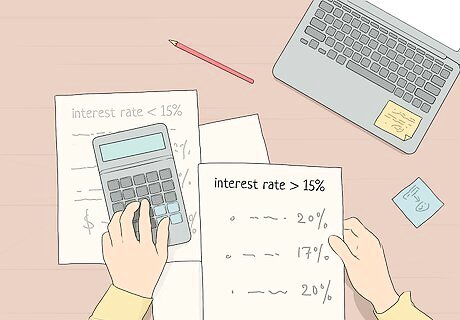 Focus on high-interest rate debts instead if you have a lot of those. If you have large debts with high interest rates, the snowball method might end up costing you more money in the long-run. Instead, you might benefit from the debt avalanche method, which targets high-interest-rate debts first. For example, if you owe $10,000 at an interest rate of 18% and have several smaller debts of less than $1,000 each that have interest rates below 12%, it would make more sense for you to start chipping away at the $10,000 debt first. While you're chipping away at that larger debt, you might also find out if you can get a lower interest rate or transfer the balance to a different credit card. If your credit score has improved significantly since you first opened the account, the creditor might agree to lower your rate.