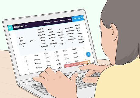 Compare the taxes in other states. If you're not afraid to move further away, you might be able to save a lot of money by moving to a more tax-friendly state. Some states, such as Tennessee and Florida, have no state income tax at all. Many others don't tax Social Security payments. You'll also want to compare sales tax rates since this will likely be the bulk of the taxes you pay in retirement.