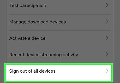 Scroll down and tap Sign out of all devices. This is listed under the SETTINGS tab near the bottom of the Account page. A confirmation message will appear letting you know that it’ll take 8 hours for all devices to be logged out.