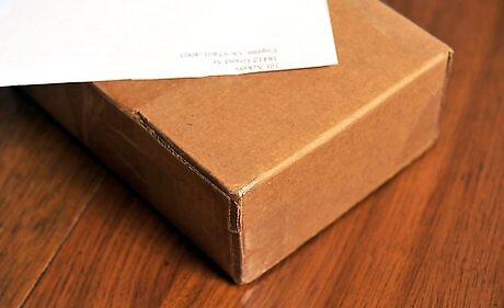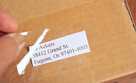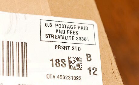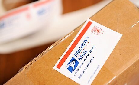 Get a Post Office mailing label. Don't use stamps alone. Ask the Post Office clerk to print a postage label. If you want to put colorful postage stamps on the package, don't put the full amount of postage needed. If you did use enough stamps, the clerk can still print a label with no value; the bar-coded label will help route the package quicker. If you go to a larger Post Office, they may have an automated kiosk where you enter the information into the computer and then use your credit or debit card to pay. Follow the instructions on the screen to purchase a postage label; then put the addressed and postage-paid package into the bin.