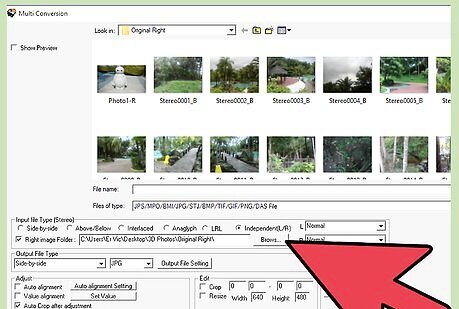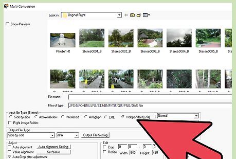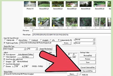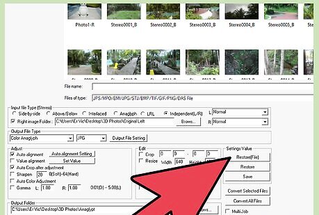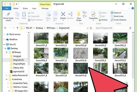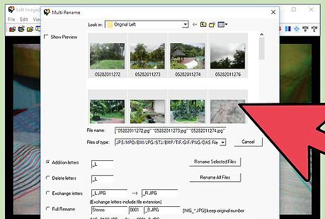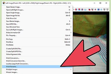 Move the images to your computer. If you're using a digital camera, it's useful to organize the images for easier processing later. Create a folder called "3D Photos". Inside 3D Photos create some sub folders. One might be named "Original Right" or "OR" and "Original Left" or "OL". Create another folder called "Anaglyph" and perhaps another called "Side by Side". These are for storing your finished work. Move the images from your camera into the 3D Photos folder, and then move the right shots into the "OR" folder and the left shots into the "OL" folder. There should be the same number of shots in each folder.Make 3D Images Using StereoPhoto Maker Step 3Bullet1.jpg Rename the files. Suppose you've started by taking five pairs of images. You might name them Photo1-L, Photo1-R, Photo2-L, Photo2-R, Photo3-L, Photo3-R, and so on. If you've taken 10 or 20 or 50 or several hundred "stereo pairs" of images, renaming them individually would take a long time. There's a way to rename a whole folder full of files (Multi-Rename) in SPM that's described later in this tutorial. Make 3D Images Using StereoPhoto Maker Step 3Bullet2.jpg