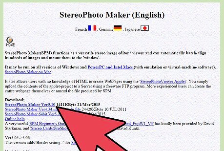 Go to the SteroPhoto Maker website and at the top you'll see: StereoPhoto Maker Ver4.01 836KByte 22/May/2009 StereoPhoto Maker Ver4.01 include help file 11087KByte 22/May/2009