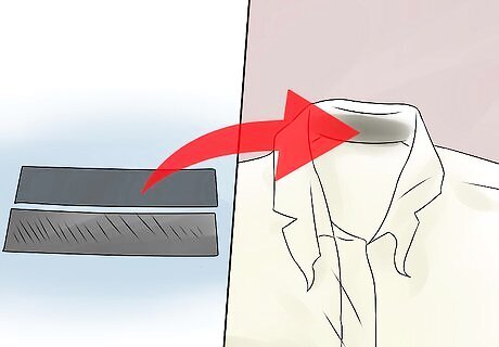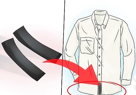 Cut velcro to line the shirt opening. Measure the length of the shirt opening. Place the measuring tape along the edge of the shirt's opening. Measure the length of the opening from the tip of the shirttail to the bottom of the collar. Write down the measurement, then use it to cut two pieces of velcro that will stretch the entire length of the shirt opening on both sides.