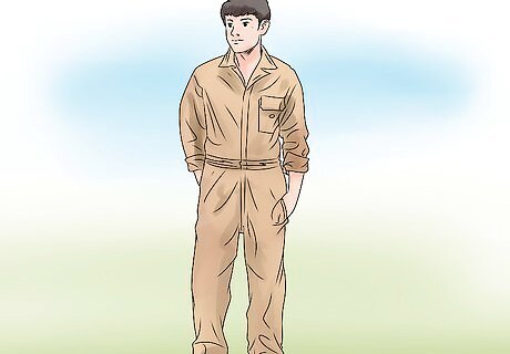 Purchase a light-colored, long-sleeved coverall. This option is more expensive than making a suit out of a shirt and pants, but some find it easier to have a one-piece suit. make sure the coverall you purchase is white or light in color. Dark colors can aggravate bees since these colors remind them of their predators, like bears and skunks. Make sure the coverall fits loosely in order to keep the material from directly contacting the skin. This helps to avoid stingers that might pierce the fabric.