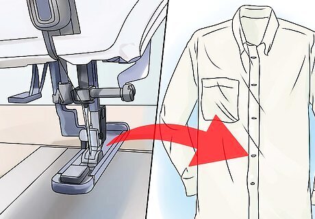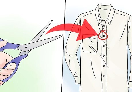 Remove the buttons from the shirt. Use a small pair of scissors to snip off all the buttons. Take care to snip the threads just underneath the buttons without cutting a hole in the shirt. Snip the buttons from the opening of the shirt, the collar and the sleeve openings.