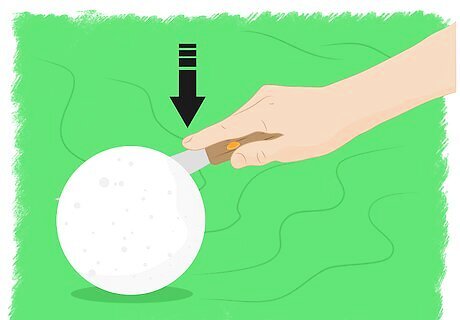Cut a Styrofoam ball in half. Small styrofoam balls, which can be found at most craft stores, are a perfect low-cost solution for making Deadmau5's eyes. You'll want a styrofoam ball about 4.5" (11.43 cm) in diameter. Cut your sphere in half as precisely as possible. Use a knife, rather than scissors.