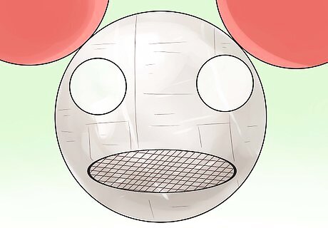 Add more papier mâché as needed, then remove the beach ball. The initial papier mâché layers may not be as thick or rigid as you desire. If not, add more as you see fit. Each time you add additional layers, you'll want to let your Mau5head sit for another night. Finally, when your Mau5head is just how you want it, undo the beach ball's plug and allow it to deflate. Once it is deflated enough to fit through the hole, pull it out. Be careful when you pull the beach ball out, as it's likely that it's stuck to the inside of the mask. Be gentle to avoid tearing.