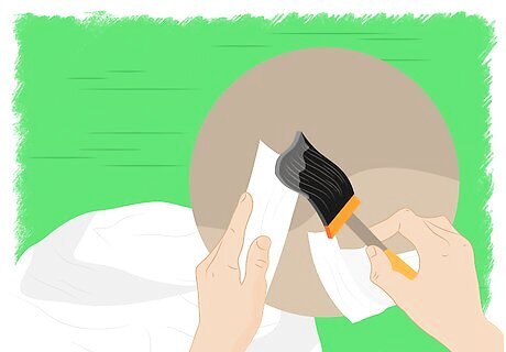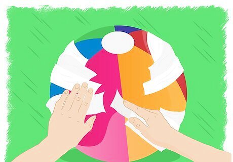 Coat the ball with papier mâché. Next, we'll create a rigid "shell" from papier mâché that will form the central spherical portion of our Mau5head. There are several different ways to make papier mâché. Any method that works for you is fine, though we are partial to wikiHow's own papier mâché recipe. Once you've made your liquid mixture, soak thin strips of torn newspaper in it, then lay them flat on the beach ball. Continue until your ball is completely coated (leaving a clear area around the air nozzle) and you cannot see its design through the paper. Let dry overnight. You will want a strong, rigid Mau5head, so it's generally a good idea to plan on laying down several layers of papier mâché. Some online methods recommend as many as nine layers.