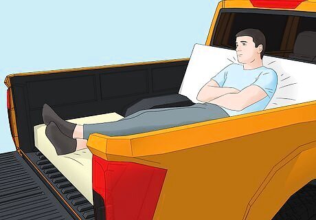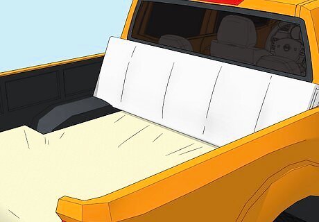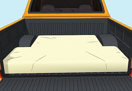 Create the pillow piece. This piece will sit up against the front of the truck, just below the window, to allow you to recline comfortably. As with the mattress base, you'll need to measure the width and height of the space on your truck under the window, side to side. Use the measurement to cut the particleboard or plywood and foam pieces to shape.