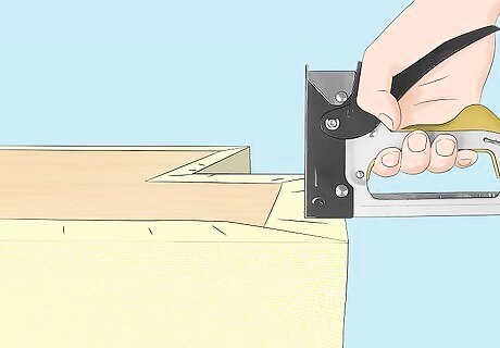Staple the overhang fabric to the board on the back. Use a staple gun.