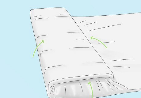 Fold the sheet taut over the foam and board combination until it's completely covered both sides, sandwiching in the board and foam. On what will be the underside, staple into place. Use a staple gun again. Turn it over and check that it's smooth and sitting properly.