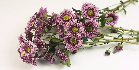 Choose the main flowers for your headdress. Visit a florist, grocery store, or any retailer that sells flowers in your area and choose the flowers you want to use to create your floral headdress. Depending on the size of the flowers and bunches they are sold in, you will need 1 to 2 bunches of your main flowers (about 6 to 12 stems). The main flowers set the tone for your headdress and make the biggest statement, so keep in mind what color scheme and vibe you are going for. You can use real or fake flowers depending on the occasion and your personal preference. Choose one main flower for your headdress, or mix it up with 2 or 3 options. Roses, dahlias, daisies, carnations, and peonies are all great options that tend to hold up well on floral headdresses.