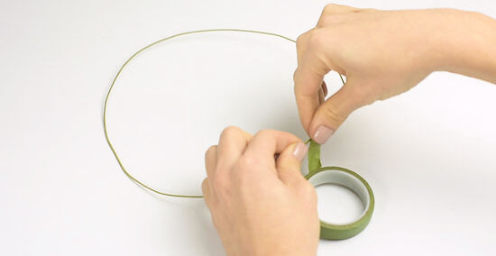 Tape the overlapping florist wire to secure in a circle. After you have molded the florist wire to fit your head, remove it while maintaining your hold on the overlapping ends. Wrap the overlapping ends tightly with florist tape, replacing your fingers with the tape. You can also use thin craft wire to secure the ends. To do this, cut a 2 inches (5.1 cm) to 3 inches (7.6 cm) piece of craft wire. Twist the craft wire around the overlapping section to secure in place.