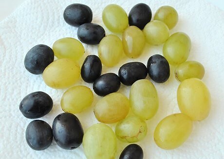 Wash the grapes and dry them on a clean kitchen towel or paper towel.