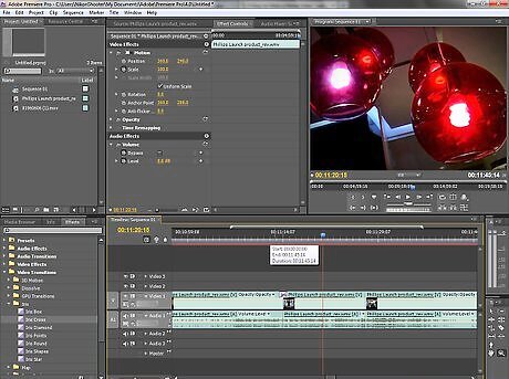 Add the finishing touches. If you'd like to add music, you can do so by importing music files and dragging them into your timeline's audio track. You can choose to mute the original video track (useful for scene shots), or leave it on and use the music to add emotion to an interview or speech. Finally, add a title card to the beginning of your movie - or title it on top of the opening footage for a more active effect – and add credits, if necessary, to the end. Once you're done with your video, watch it with the preview tool one more time, and then export it to create a finished video. If you save it rather than exporting it, it'll remain a video project file rather than an actual video.