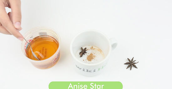 Stir honey and spices in an Irish whiskey glass or mug. Measure 1 teaspoon (7 g) of honey into the bottom of a heat-proof glass with a handle (such as an Irish whiskey glass or mug). Stir in: 5 whole cloves 1 cinnamon stick 1 whole anise star