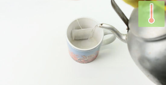 Boil a kettle of water and brew the tea. Fill a kettle halfway with water and place it on the stove. Turn the heat to high and bring the water to a full boil. Place a tea bag into a separate mug and pour 1/2 cup (120 ml) of water over the bag. Steep the tea for 3 to 4 minutes. Remove the tea bag. If you're using an electric kettle, turn it on until it boils. For a classic flavor, use English or Irish breakfast tea. Or use your favorite type of tea (such as chai, jasmine, or green tea).