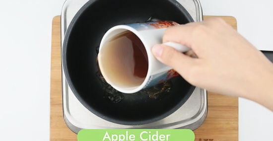 Add the cider and brown sugar. Pour 6 cups (1.4 liters) of apple cider into the saucepan along with 2 tablespoons (25 g) of packed light brown sugar. Stir the cider to combine it with the seasonings and sugar.