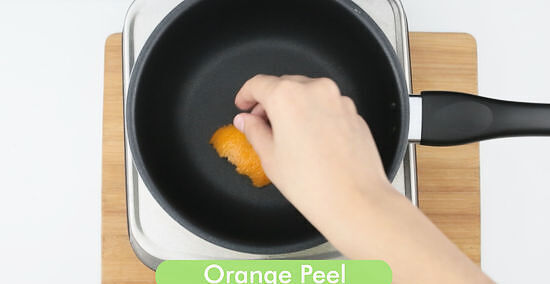Place the aromatics in a medium saucepan. Wash an orange and use a vegetable peeler or paring knife to peel off one 2-inch (5 cm) piece of orange zest. Place the zest in a medium saucepan along with a few fresh gratings or a pinch of nutmeg. Slice 1 vanilla bean in half so you can see the seeds. Take a sharp knife and scrape the seeds out of the bean. Scrape the bean paste into the saucepan. If you don't have vanilla bean, you can add vanilla extract right before you serve the drink.