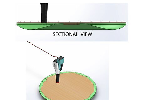 Attach the smaller circle to the larger one. Use wood screws to attach the smaller circle to the larger circle, at the exact center on the underside of the hovercraft. These screws should be no longer than the depth of both circles. Use roughly 5 screws to get a tight fit.
