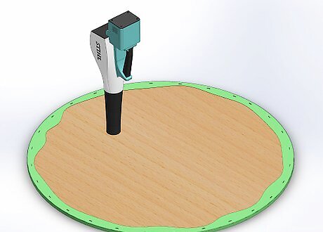 Cut out your plastic cushion. Cut the plastic sheeting in a circle, about 1' wider than the main circle. Wrap the excess plastic over the edge of the circle and staple it down using a staple gun, about every 4”. If you want, use duct tape to tape down the extra plastic and seal any gaps at the edge. The side covered in plastic is the underside of the hovercraft.