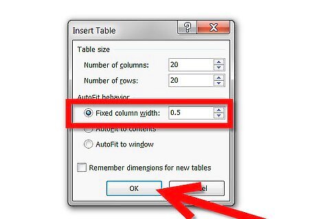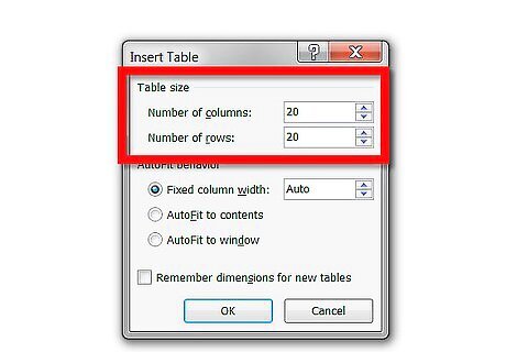 Set the number of columns and number of rows to "20" each.