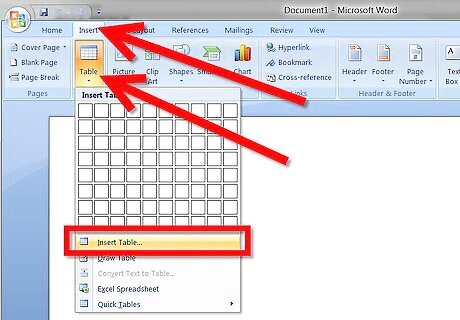 Create a table. Click on the "Table" menu and select "Insert", then "Table...".
