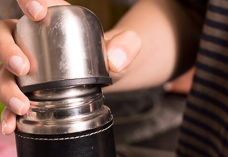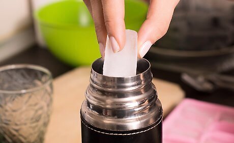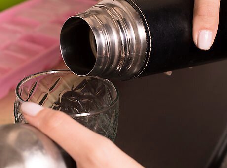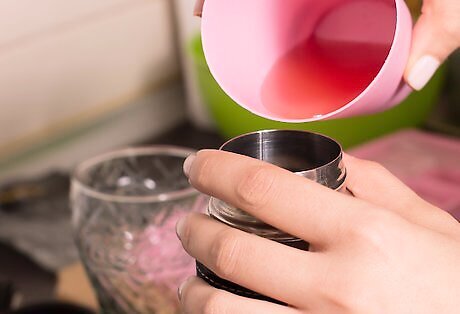 Fill your cocktail glass with ice cubes. Place it on the side to let the glass chill.