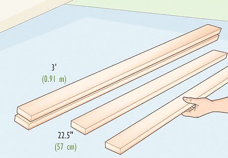 Cut a 1 in × 3 in (2.5 cm × 7.6 cm) board into 2 3 ft (0.91 m) pieces and 2 22.5 in (57 cm) pieces. These boards will form the bottom part of a lip or ledge around the top of the frame. Cut your 1 in × 3 in (2.5 cm × 7.6 cm) board into 2 pieces that are the same length as the long sides of the planter box frame, and 2 more that are the same length as the short sides. For example, for your 2 by 3 ft (0.61 by 0.91 m) planter box, the long pieces would be 3 feet (0.91 m) each, while the short sides would be 22.5 inches (57 cm) each.