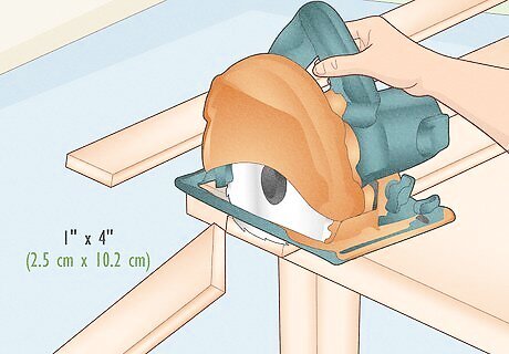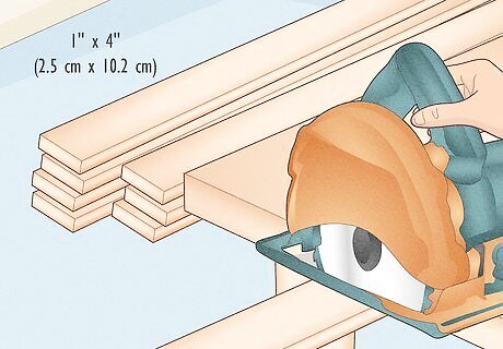 Saw a 1 in × 4 in (2.5 cm × 10.2 cm) board into 3 ft (0.91 m) and 22.5 in (57 cm) lengths. These boards should also match the lengths of the boards you cut for the planter frame. They will go on top of the pieces you just attached. However, they will be a little bit wider, creating a ledge around the top of the planter box. This ledge will help prevent soil from spilling out over the edges of the frame.