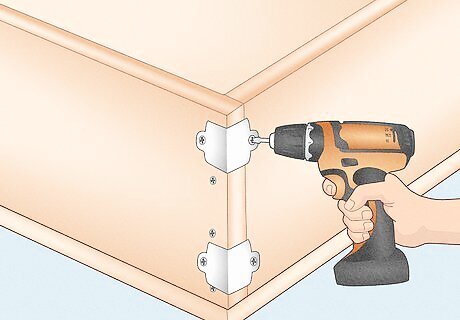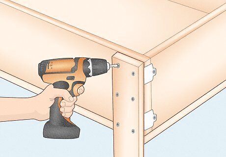 Add support pieces at each corner for stability if needed. If you’re concerned that your box isn’t sturdy enough to hold a full load of soil, add a metal bracket to the outside of each corner. Alternatively, cut a 1 in × 1 in (2.5 cm × 2.5 cm) board into 4 pieces about 8–10 inches (20–25 cm) long. Slide a piece into each corner of the planter box and attach it with 2–3 in (5.1–7.6 cm) deck screws. You can purchase simple metal corner support brackets at any hardware store. They often come with their own screws.