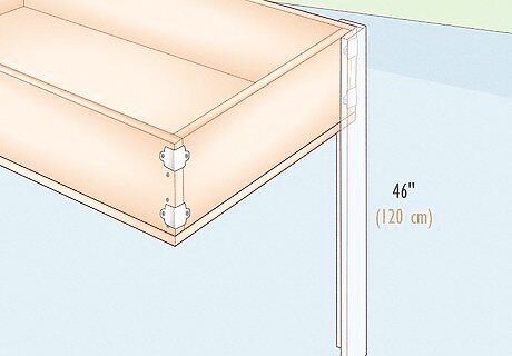 Plan to make the legs about 46 inches (120 cm) long. Think about who will be using the planter box the most, and aim to make it tall enough so that they don’t have to bend over much to use it. For an adult, around 36 inches (91 cm) is a reasonable height for the finished box. If you’re making a planter box for a child, make the legs shorter—e.g., around 20 inches (51 cm). Since the walls of the planter are 10 inches (25 cm) high, add an extra 10 inches (25 cm) to the length of the legs to account for the overlap where they attach to the walls. Skip the legs altogether or make them much shorter if you plan to put the planter on a table or other elevated surface. To make the planter box wheelchair accessible, aim for a height of around 24 inches (61 cm).