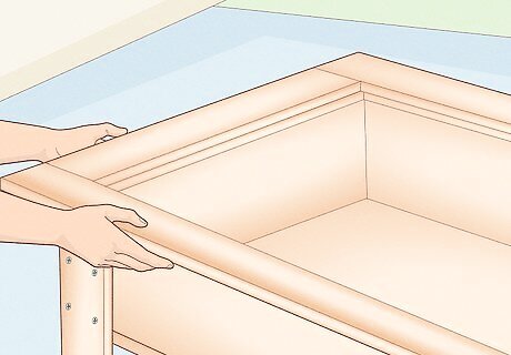 Attach 1 leg piece at each end of the long sides. Make the outer edge of each leg piece flush with the outer edge of the frame where the corners of the frame come together. The top of each leg piece should be flush with the top of the frame.