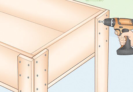 Use 1.5 in (3.8 cm) screws to attach the legs. To make it easier, drill pilot holes in the leg pieces before screwing them in. To attach the legs securely, put in 3 evenly spaced screws, with the top and bottom screws about 1–2 inches (2.5–5.1 cm) from the top and bottom edges of the frame. If you prefer not to let the screws show, drive in the screws from the inside of the planter box instead of through the outside of the legs.