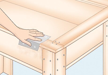 Sand down any rough edges. Examine the bed for any splinters or rough spots. Use sandpaper or a sanding block to smooth them out. Use firm strokes and always go in the same direction for a smooth finish. Sanding blocks are easier to use for this kind of work than a loose sheet of sandpaper. If you don’t have a sanding block, just wrap a piece of sandpaper around any small, rectangular piece of wood to make your own. Use a medium-grit sandpaper, in the 60- to 100-grit range. If you plan to paint or stain the wood, go over it again with a finer-grained sandpaper, such as 120- to 220-grit.