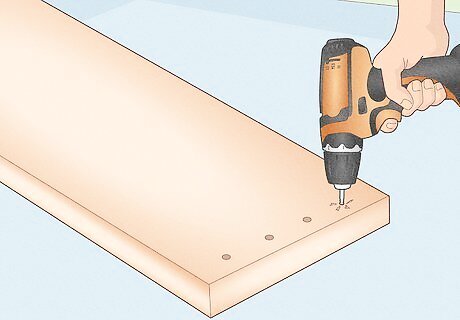 Drill 4 pilot holes into each end of both long sides. Pilot holes are holes you drill into a piece of wood before driving in a nail or screw. These holes will make putting in the deck screws a lot easier, and will also help protect your boards from splitting or warping when you put the screws in. Use a pencil to mark 4 evenly-spaced dots about .5 in (1.3 cm) from the end of each board, on both ends. Drill screw holes into each of those 4 spots, using a drill shank with about the same diameter as the screws you’ll be using. You can also mark the spots where you want to drill with a piece of painter’s tape. If possible, use a clamp to hold the boards in place on a work bench or table while you drill them. This will add extra stability.