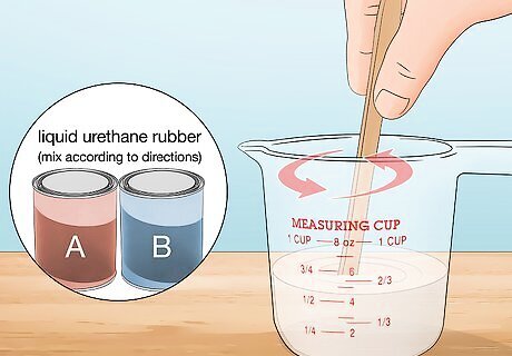 Mix together urethane rubber in a container. Use a liquid urethane rubber and mix it together in a container according to the directions on the packaging. Stir the mixture together until it forms a clear liquid. You can purchase liquid urethane rubber from art supply stores and online.Warning: The fumes from the urethane rubber can make you dizzy, so be sure to work in a well-ventilated area.