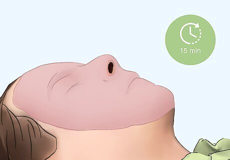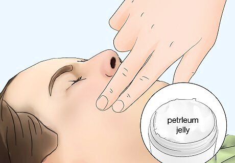 Spread a layer of petroleum jelly over your subject’s entire face to protect it. Use a person or a head form as your subject to form your mask. Spread the petroleum jelly over the entire surface of your subject’s face, especially around the eyebrows and around hairline to keep the mask from sticking. Make sure you cover the lips, chin, and the top area of the neck as well. Even if you’re using a head form, apply a layer of petroleum jelly to keep the silicone from sticking to the material. Petroleum jelly will not damage skin or cause irritation as the mask hardens.