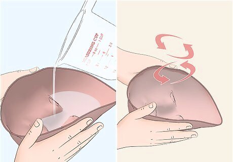 Pour the urethane into the silicone mold and slosh it around. Carefully add the liquid urethane rubber into the inside of the face mold so you don’t spill any on the outside of the mold. Hold the mold with your hands and gently slosh the liquid around so it covers all of the nooks and crannies of the mold. Cover the entire inside of the mold with a thin layer of the urethane rubber. You can pour out the excess urethane into a garbage can. The urethane will fill all of the spaces in the mold to create a detailed cast.
