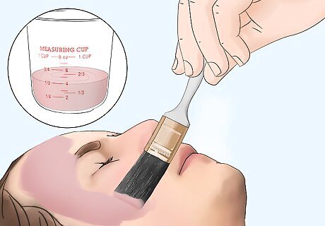 Apply a layer of the silicone over your subject’s face with a paintbrush. The Gel-00 silicone doesn’t have a strong odor and isn’t corrosive, which makes it safe to use on skin. Dip the paintbrush into the container of silicone, and wipe the excess off on the lip of the container. Use smooth, consistent strokes to cover your subject’s face in an even layer. Dip the brush into the silicone whenever you need more. Make an even layer thats about ⁄4 inch (0.64 cm) thick. If you’re using a person as your subject, have them keep their eyes closed. Makes sure you don’t cover your subject’s nostrils so there are airways when the mask is finished.
